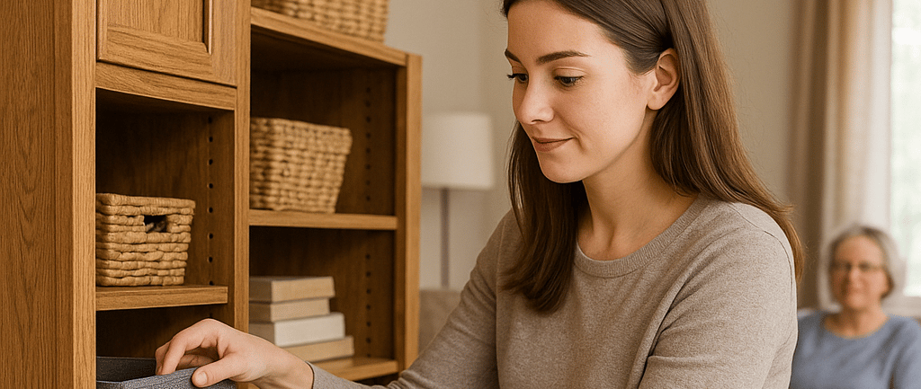 Install tip: Keep daily‑use items at waist‑to‑chest height. Label shelves by category (“meds,” “glasses,” “remotes”).